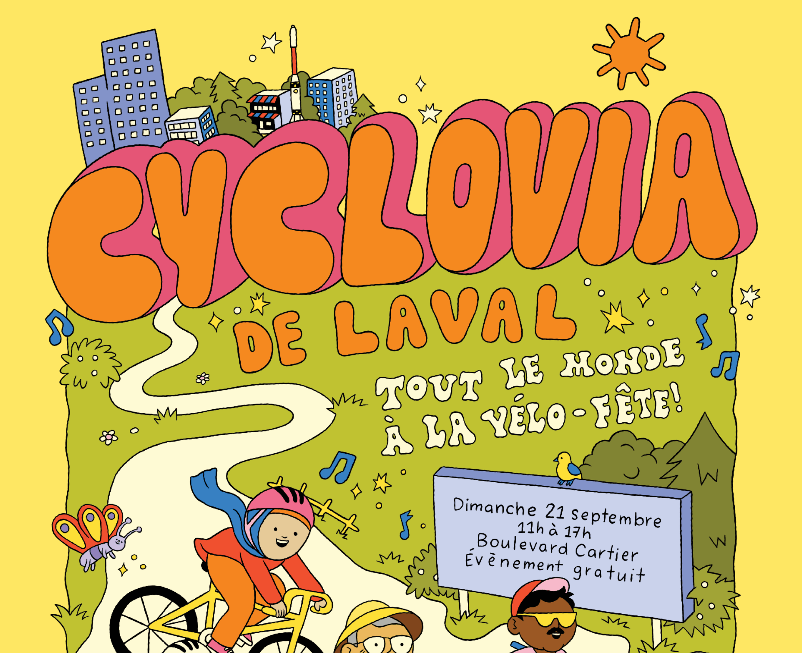 Le CRE de Laval et la Ville de Laval organisent la toute première Cyclovia sur le territoire lavallois, qui se tiendra le dimanche 21 septembre prochain, de 11 h à 17 h. À l’occasion de cette vélo-fête, un tronçon du boulevard Cartier (entre Michaud et Ampère) ainsi qu’un tronçon du boulevard du Bon-Pasteur (de Cartier à la rue Laurier) seront temporairement fermés aux véhicules motorisés pour permettre aux moyens de transport actif de se réapproprier l’espace public. Place aux bicyclettes, patins à roulettes et trottinettes !