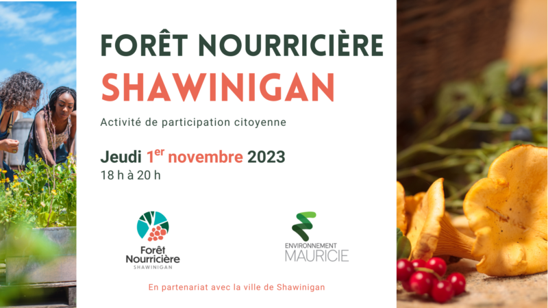 Dans le cadre d’un tout nouveau projet visant à implanter une forêt nourricière à Shawinigan, la communauté est invitée à la première activité de participation citoyenne. Le but de cet événement est de vous impliquer, citoyennes et citoyens de Shawinigan, dans la conception et la pérennisation de l’espace à venir.