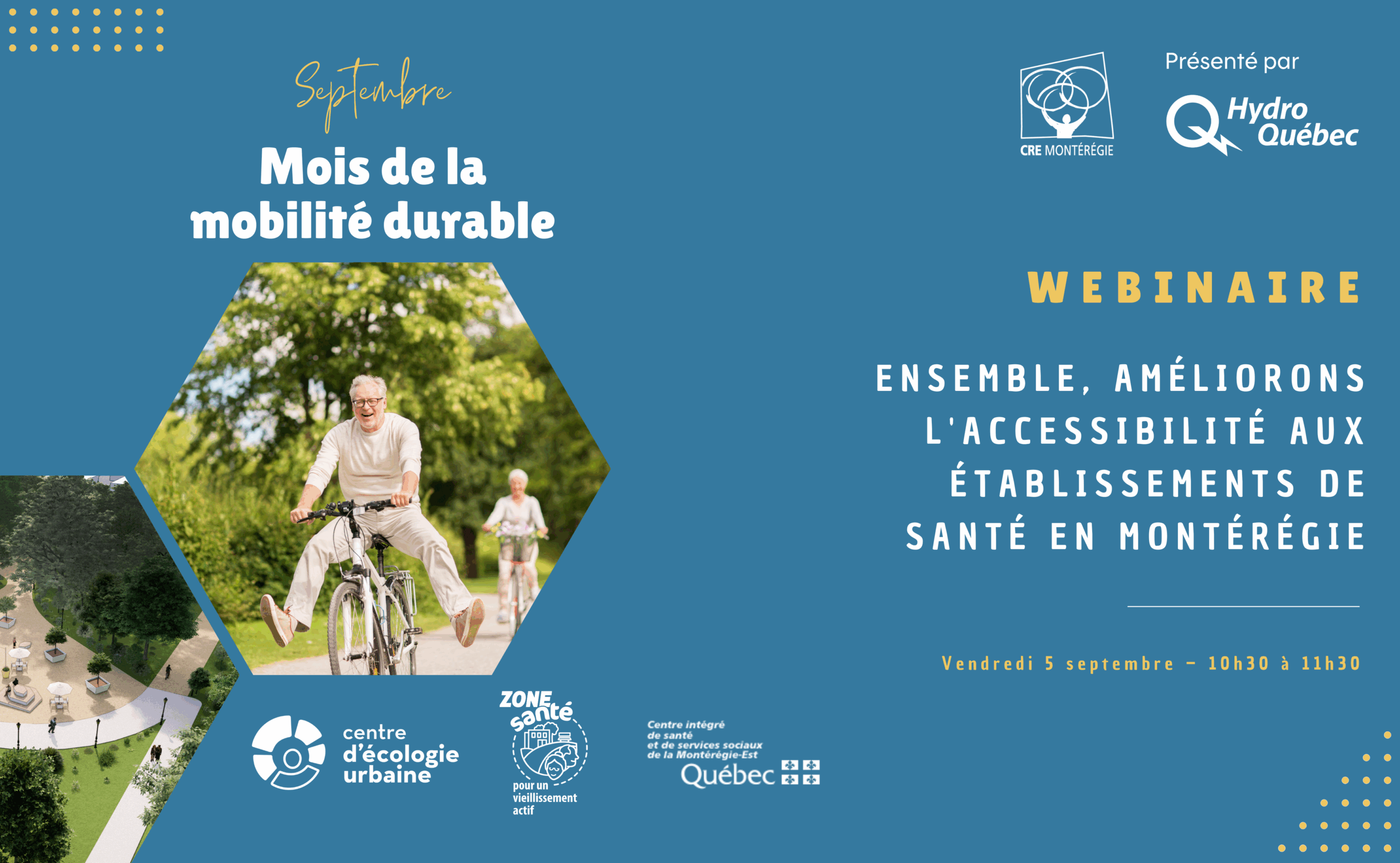 Pour découvrir comment cette démarche a été implantée dans trois établissements de santé de la Montérégie, le Conseil régional de l’environnement de la Montérégie vous invite à son webinaire Ensemble, améliorons l’accessibilité aux établissements de santé en Montérégie !
