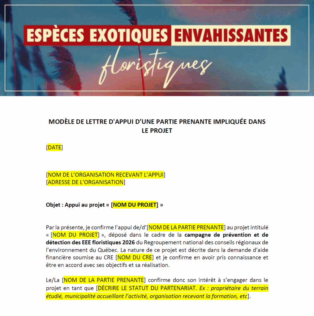 - Répondre à un besoin identifié par la table de concertation régionale dans le cadre de l’élaboration de la stratégie régionale de lutte contre les EEE floristiques;