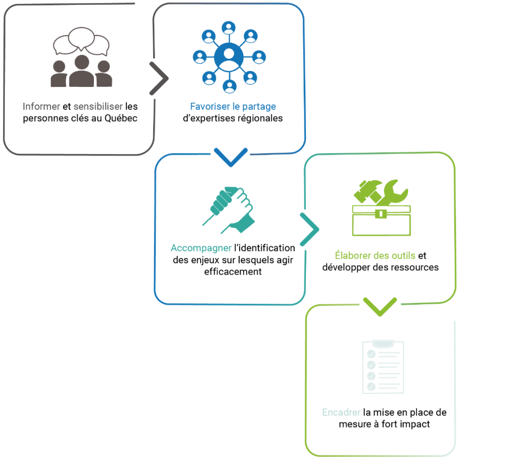 L’ensemble de votre entité doit réfléchir à ses impacts. Les CRE sont là pour vous accompagner dans la réflexion. Ils connaissent particulièrement bien votre contexte et les ressources dont vous disposez. Ils ajusteront ainsi leurs recommandations à votre réalité.