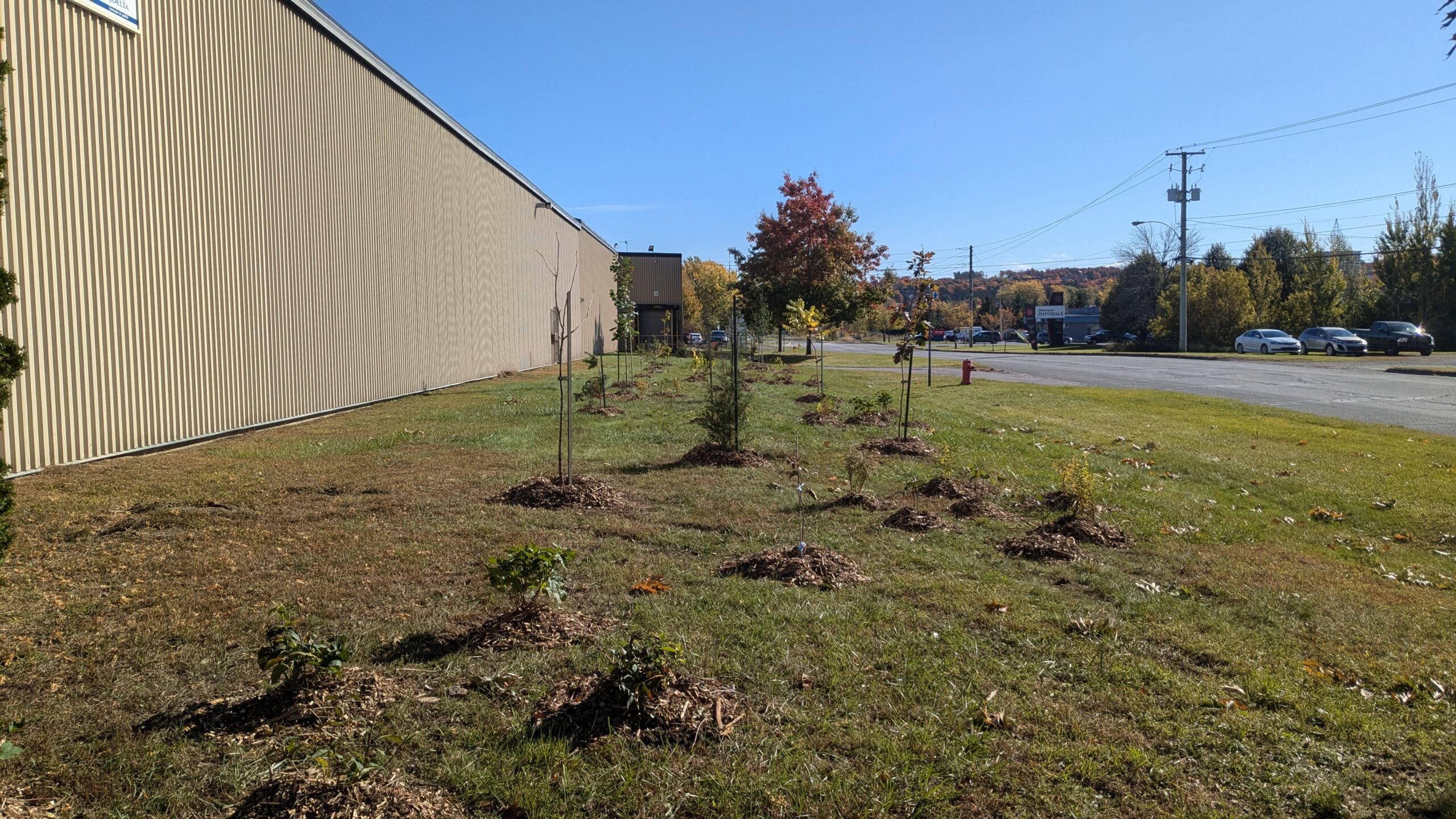 Le projet de verdissement chez Transformateurs Delta vise à améliorer l’environnement de travail tout en contribuant à la lutte contre les îlots de chaleur dans le quartier industriel. L’initiative comprend l’installation de végétaux grimpants sur les murs, la création d’un massif arbustif avec une zone sans tonte, ainsi que la plantation d’arbres pour offrir de l’ombre aux usagers. L’entreprise souhaite aussi réduire les superficies de gazon tondu pour favoriser la biodiversité. Une attention particulière sera portée à la mise en valeur des transformateurs situés près du stationnement pour voitures électriques, afin d’intégrer harmonieusement les infrastructures techniques dans un aménagement verdoyant et fonctionnel.